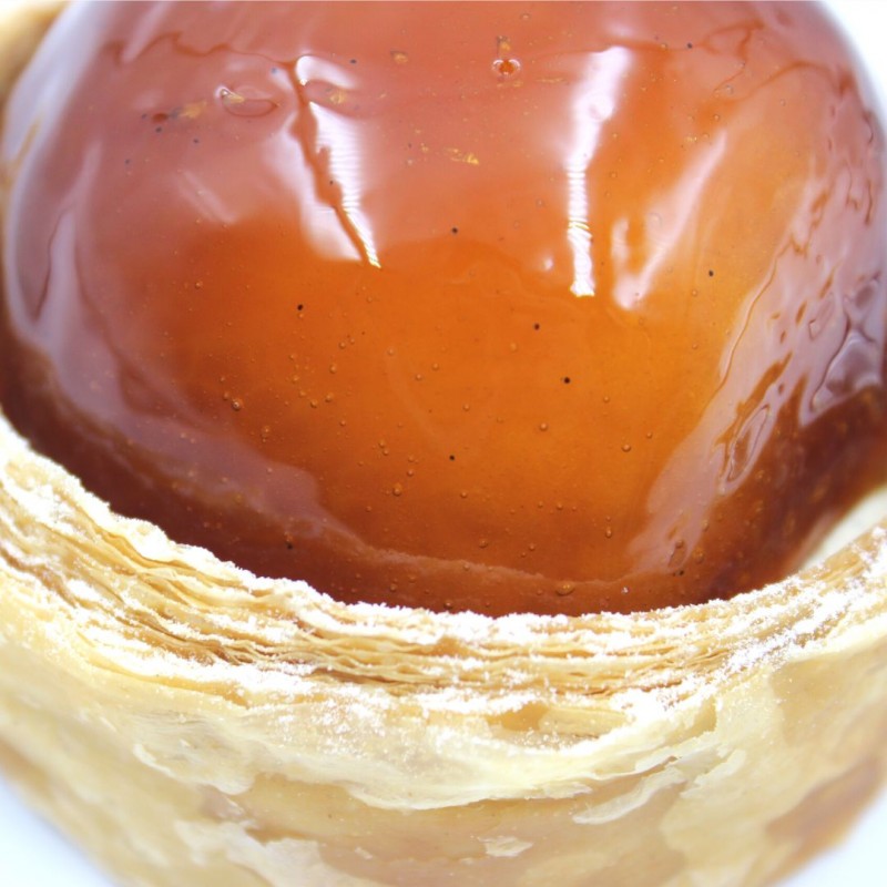 Pommes caramélisées, pâte sablée et feuilletée, crémeux vanille.